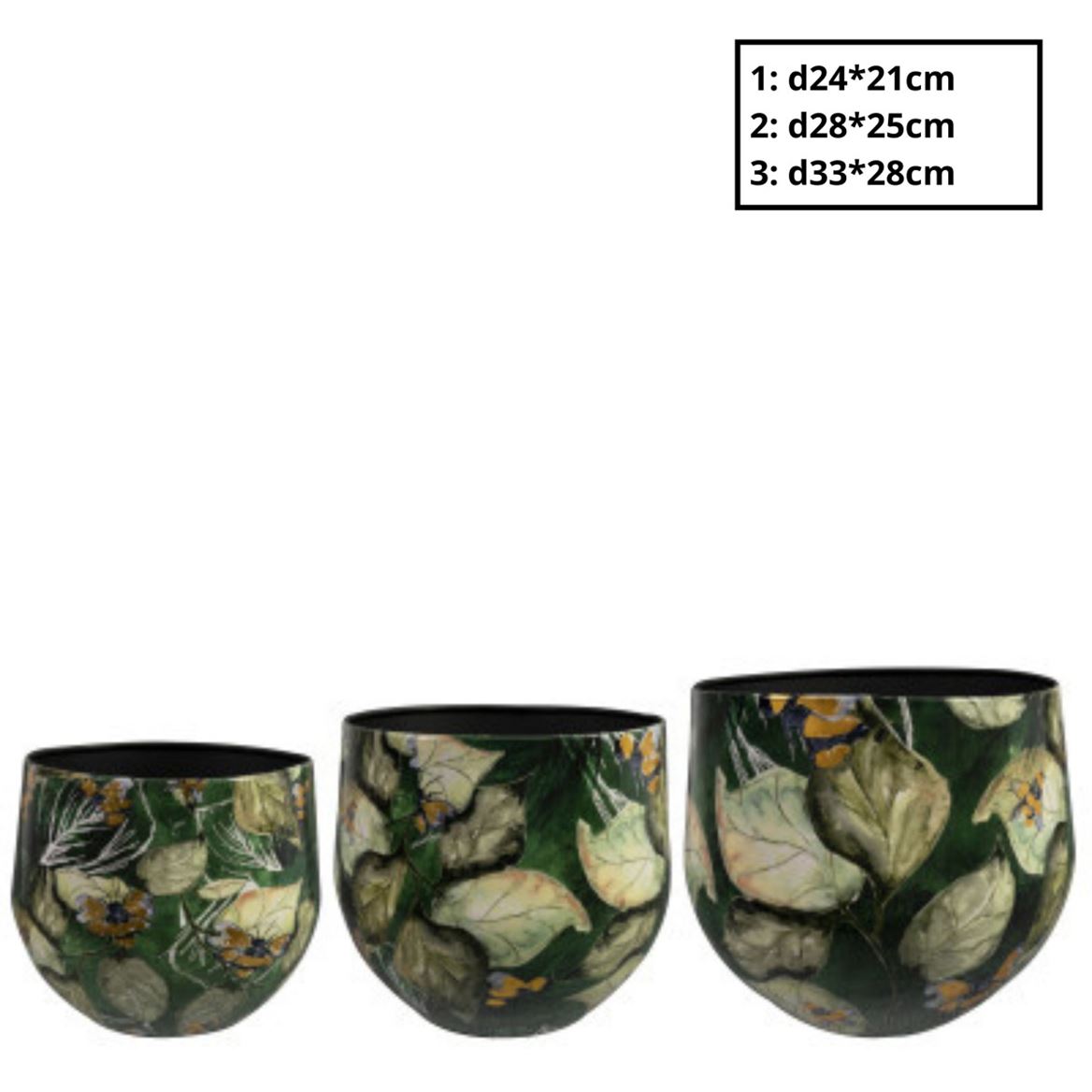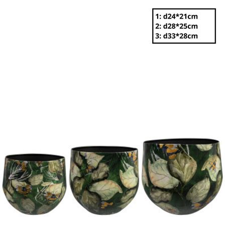 Metaal Bee Green Pot S/3 D33*28cmQuantity 3 Weight (gr.) 28 Units 1 Bloemdiameter (cm) 28 Sales unit 1 colour green Colour Green